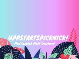 Kom och lär känna ditt lesbiska/Queera sammanhang i Dalsland! Vi ses på en picknick i parken Plantaget, Åmål. Kl 14-16. Ta med filt! Vi bjuder på snacks och pyssel! Vi ses!
